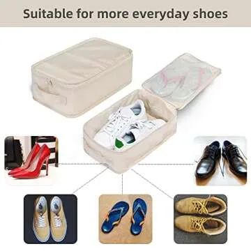 Travel Shoe Bags, Foldable Waterproof Shoe Pouches Organizer-Double Layer (4 Cream Shoe Bag)