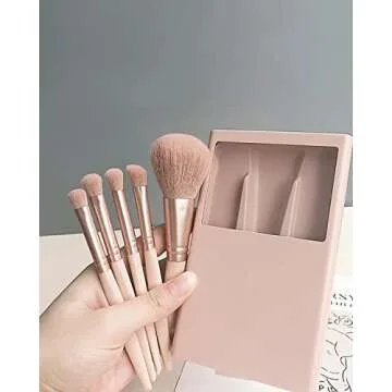 Show more The ultimate solution for makeup enthusiasts, this mini facial cosmetic brush set comes thoughtfully packaged in a sleek, portable case with built-in mirror. Featuring five essential brushes—detail brush, nose shadow brush, loose powder brush, eye shadow brush, and smudge brush—this set is designed to help you effortlessly achieve a full-face look anywhere and anytime. Crafted from high-quality synthetic fibers, each brush guarantees a delicate and soft experience on your skin, while fast-drying properties mean no more waiting around for brushes to be ready for use.