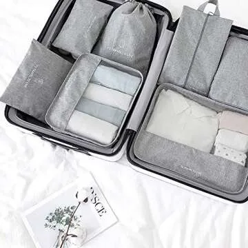 Travel Storage Bag / 7 pcs Set Luggage Organizer Packing Cubes,Compression Pouch (Gray)