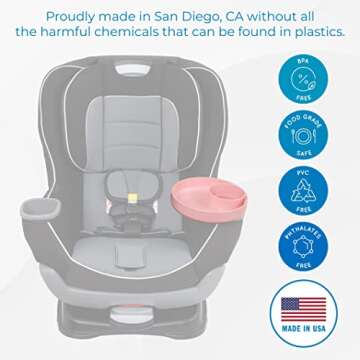 Travel Tray Round, USA Made Easily Convert Your Current Cup Holder to a Tray and Cup Holder for use with Car Seats, Booster,Stroller and Anywhere You Have a Cup Holder! Light Pink