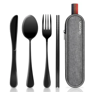 Show moreDiscover the ultimate companion for your meals on-the-go with our Quatish Portable Silverware Set. This thoughtfully designed set is made from high-quality 18/8 stainless steel, ensuring durability, lightweight handling, and a polished look that rivals even high-end silverware at home. The sleek, elegant design elevates every dining experience, whether you're at work, dining outdoors, or enjoying your favorite takeout at a Japanese restaurant. Packaged conveniently in a compact, chic carrying case, this 5-piece utensil set includes an adult-sized fork, knife, spoon, and innovative chopsticks, perfect for all types of cuisines and food preferences.