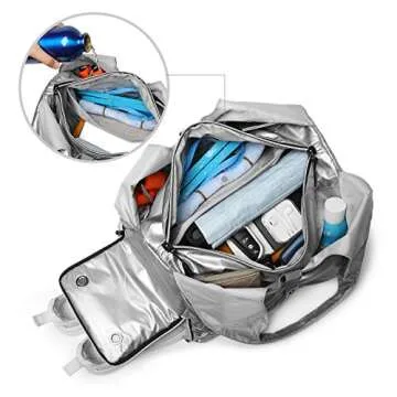 Travel Yoga Gym Bag for Women, Carrying Workout Gear, Makeup, and Accessories, Shoe Compartment and Wet Dry Storage Pockets(Medium,Sliver)
