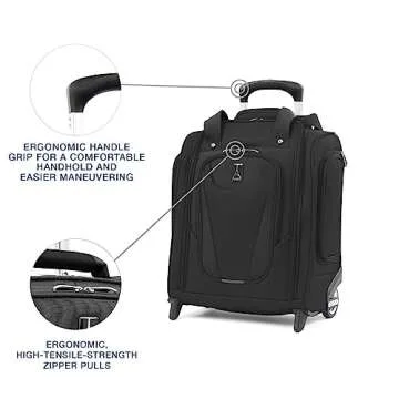 Show more Introducing the ultimate travel companion designed for the modern traveler: a compact, wheeled underseat carry-on bag that redefines convenience and organization. Crafted by the trusted brand TravelPro, this remarkable bag features a durable polyester fabric with a stain-resistant and water-repellent Duraguard coating, ensuring that it stands up to the rigors of travel while keeping your belongings safe from spills. With its ergonomic, high-tensile-strength zipper pulls, you can expect lasting durability, making it a trusty sidekick for all your adventures.