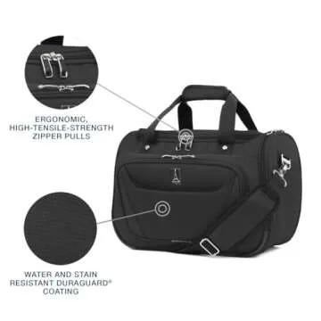 Show moreIntroducing the Travelpro Maxlite 5 Softside Lightweight Underseat Carry-On Travel Tote - the ultimate travel companion for those who prioritize convenience and style. Weighing only 1.6 pounds and designed to fit snugly under most airline seats, this compact yet spacious tote, available in classic black, is crafted from high-quality polyester fabric. With its DuraGuard coating, it boasts water-repellent and stain-resistant properties, making it perfect for the rigors of travel. Ergonomically designed zipper pulls promise durability, while H2O Guard technology safeguards the interior from moisture, ensuring your essentials stay secure and dry.