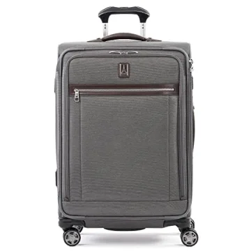 Show more The Travelpro Platinum Elite Softside Expandable Checked Luggage is designed for the modern traveler who prioritizes both function and style. Tailored for ultimate convenience, this exquisite piece embodies the PrecisionGlide System, ensuring that every journey is as effortless as possible. With eight MagnaTrac self-aligning spinner wheels, you will glide gracefully through any terminal or airport, putting ease back into your travels. Equipped with a height-adjustable PowerScope handle and a comfortable Contour Grip, this suitcase caters to travelers of all sizes and maintains a sturdy grip to enhance your travel experience.