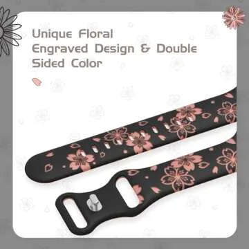 TreasureMax Designer Floral Engraved Band Compatible with Apple Watch Bands 40mm 38mm 41mm 44/45/42mm,Two-Tone Flower Soft Silicone Sport Strapfor iWatch Series 10 9 Ultra SE 8 7 6 5 4 3 2 Women Black
