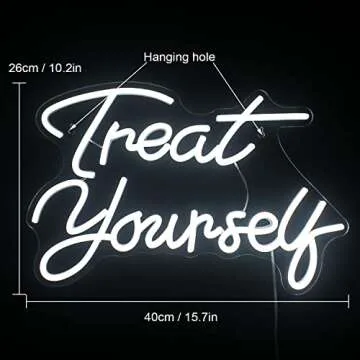 Treat Yourself Neon Signs White Led Sign for Bedroom Wall Letter Neon Lights Wedding Signs Neon Room Decor for Birthday Gift Party Home Decor Bar