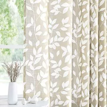 Treatmentex Leaf Print Semi Sheer Curtains for Living Room 52" x 63" White and Taupe Curtain Panels for Windows, 2 Pack, Taupe, Grommet Top