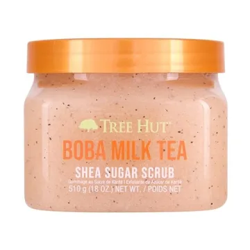 Show more Indulge in the luxurious experience of the Tree Hut Boba Milk Tea Shea Sugar Scrub, a must-have product designed to transform your skincare routine into an extraordinary ritual. This limited edition scrub not only exfoliates but rejuvenates your skin with every use, making it a delightful escape you won't want to miss. Infused with a unique blend of natural ingredients, including real sugar, shea butter, and soothing peppermint oil, it envelops you in a calming yet invigorating aroma, reminiscent of classic holiday desserts. With the inviting scent of creamy caramel balanced perfectly with sweet vanilla and a refreshing hint of peppermint, your bathroom will feel like a tranquil sanctuary.