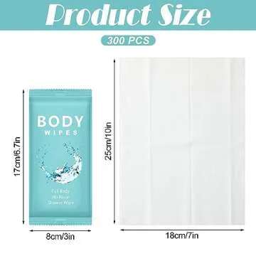 Treela 300 Pcs Large Body Wipes Individually Wrapped Bath Wipes for Adults Bathing No Rinse Shower Bulk Deodorant for Homeless Personal Cleansing Wipes for Travel Gym(7.09" X 9.84",Blue)