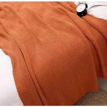 TREELY Knitted Throw Blanket Rust Orange Knit Throw Blanket for Couch Sofa Beach Chair, 50" x 60"