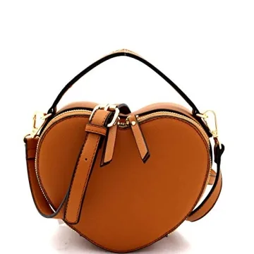 Show moreIntroducing the Trendeology Cute Heart Shape Girls Womens Vegan Leather Small Handle Satchel Crossbody Purse in a charming tan color, perfect for adding a delightful touch to any outfit. Crafted from high-quality vegan leather, this compact yet spacious purse is designed to hold your essentials such as cards, cash, lip gloss, and even car keys! With dimensions of 7.5 inches in length, 3 inches in width, and a height of 6.5 inches, it’s the perfect accessory for a night out or any casual outing. The unique heart shape adds a playful twist to your traditional handbag, while the optional adjustable shoulder strap offers versatility for however you choose to carry it. The chic gold-tone hardware elevates the overall aesthetic, making it a must-have in your accessory collection.