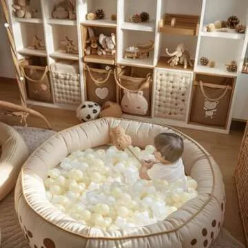 TRENDPLAY Star Ball Pit Balls for Toddlers - 100 Count Star Balls Different Shapes, Non-Toxic Plastic Balls for Safe Play, Boys Girls Festival Party Decoration, Beige+ Clear