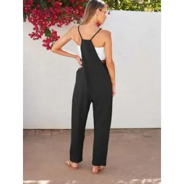 Trendy Queen Jumpsuits for Women Casual Summer Onesie Rompers Sleeveless Loose Baggy Overalls Jumpers, Black, L