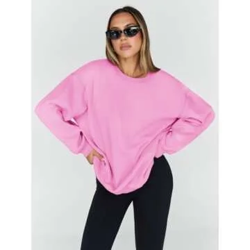 Trendy Queen Sweatshirts for Women Hoodies Oversized Crewneck Tops Sweaters Comfy Fall Winter Outfits Clothes 2025 Fashion Pink S