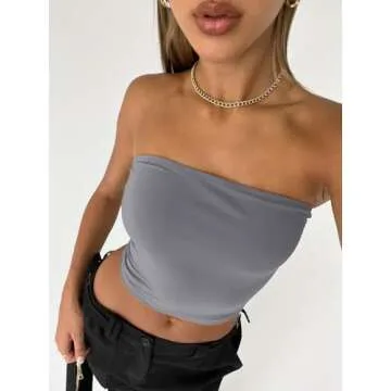 Show moreElevate your summer style with the Trendy Queen Women's 3 Pack Summer Tube Tops. Crafted with an exquisite blend of 88% Polyester and 12% Spandex, these bandeau tops are designed to provide unmatched comfort and flexibility. The ultra-soft and lightweight fabric will hug your body just right, making them perfect for all-day wear. Available in classic colors of White, Black, and Grey, these stylish tube tops offer a chic appeal that seamlessly transitions from casual outings to party nights.