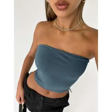 Trendy Queen Womens 3 Pack Tube Tops Crop Going Out Strapless Basic Backless Bandeau Bra Summer Outfits 2025 White Black Haze Blue S