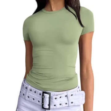 Show more Introducing the Trendy Queen Women’s Basic T-Shirts, carefully designed for style, comfort, and versatility, making them a staple for any wardrobe. This Y2K-inspired crop top features a scoop neck and short sleeves, making it the perfect addition to your summer outfits. Made from a high-quality blend of 88% polyester and 12% nylon, this top is not only lightweight and breathable but also super soft against your skin, ensuring a comfortable fit throughout the day. Whether you're dressing up for a night out or looking for a stylish top for casual wear, this top caters to all occasions.