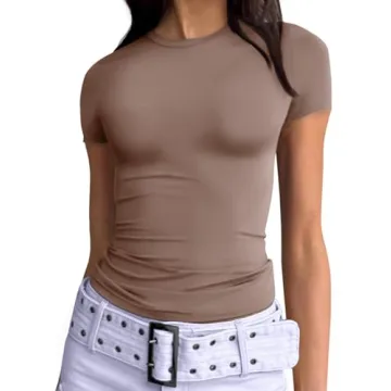 The shirt features a casual scoop neck and short sleeves, making it easy to style in multiple trendy ways. Want to go for a chic look? Wear it normally; feeling daring? Fold it up for a fashionable crop top appearance. The slim fit enhances your silhouette without compromising comfort, ensuring you can layer it effortlessly under jackets or wear it alone with confidence.