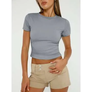 Show more This stylish Y2K crop top redefines comfort and fashion with its unique design and exceptional fabric. Made from a breathable blend of 88% polyester and 12% nylon, this top features high-quality elastic fabric that is lightweight and skin-friendly, ensuring you feel comfortable throughout the day. Its cute slim fit and regular style allow you to wear it not only as a standard tee but also to fold it up for a trendy cropped look. Suitable for various settings, this top is an essential addition to any fashion-forward wardrobe.
