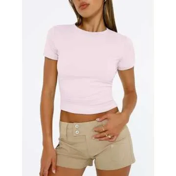 Show more Introducing the Trendy Queen Women's Basic T Shirts Summer 2025, a must-have addition to your wardrobe that combines comfort, style, and versatility. With a chic scoop neck design and short sleeves, these crop tops are perfect for the warmer months or layering in cooler weather. Made from a premium blend of 88% polyester and 12% nylon, the fabric is high-quality, lightweight, and soft, ensuring a buttery feel against your skin. Users rave about the shirts’ ability to maintain their shape while being breathable and wrinkle-resistant, making them ideal for both everyday use and special occasions.