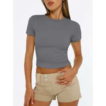Trendy Queen Womens Basic T-Shirts Summer Scoop Neck Crop Tops Slim Fit