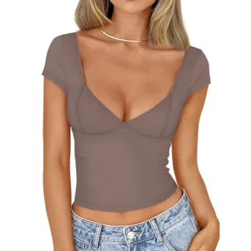 Show more Introducing the Trendy Queen Women’s Deep V-Neck Backless Top—a stylish staple for any fashion-forward wardrobe! Crafted with a blend of 85% Nylon and 15% Spandex, this slim fit t-shirt strikes the perfect balance between comfort and chic. Designed to flatter your figure, the soft and stretchy material feels lightweight against the skin, making it ideal for those warmer days or nights out. The unique double-layer design on the chest provides both support and style, allowing you to confidently showcase your curves with a sleek and fashionable look.