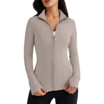 The design features of this jacket set it apart from typical sporty attire. With a mock turtleneck for added style and sun protection, thumb holes for convenient sleeve management during workouts, and zipper pockets that offer functionality without sacrificing aesthetics, this jacket is perfect for various occasions. Additionally, the slim fit contours beautifully to your body, enhancing your natural silhouette while allowing for a full range of motion. Whether you’re running errands, hitting the gym, or enjoying outdoor adventures, this jacket provides both style and supreme comfort.