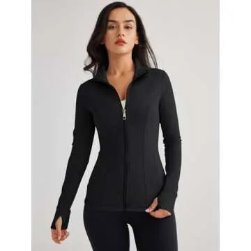 Trendy Queen Womens Lightweight Zip Up Jackets Mock Turtleneck Fall Hoodies Fitted 2024 Athletic Workout Clothes with Pockets Black M