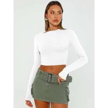 Trendy Queen Womens Long Sleeve Crop Tops Basic Slim Fitted Shirts Casual Fashion 2025 Going Out Y2k Tops Teen Girl Clothes White S