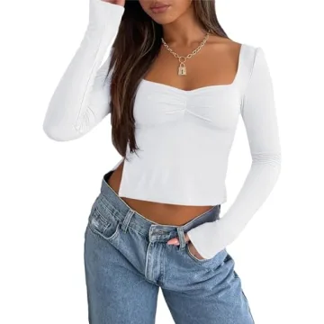 Trendy Queen Womens Long Sleeve Going Out Crop Top Sweetheart Neck Cute Y2K T Shirts Side Slit Tees