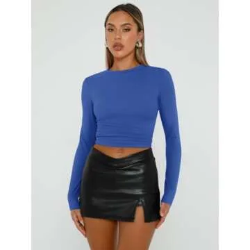 Trendy Queen Womens Long Sleeve Shirts Basic Tees Crop Tops Going Out Spring 2025 Workout Outfits Y2k Clothes Royal Blue XS