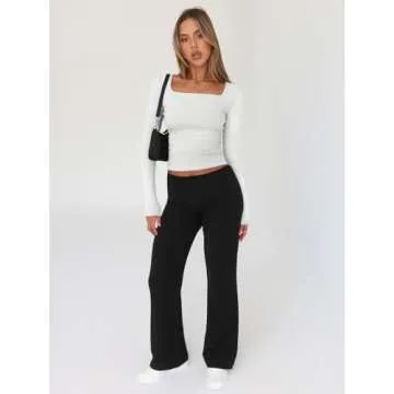 Trendy Queen Womens Long Sleeve Shirts Going Out Basic Crop Tops Fashion Y2k Workout Clothes Square Neck Fall Outfits White S