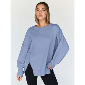 Trendy Queen Womens Oversized Sweatshirts Hoodies Crewneck Shirts Fall Outfits Teen Girls Y2k Winter Clothes LightBlue M