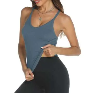 Trendy Queen Womens Ribbed Tank Tops Racerback Summer Basic Camisole V Neck Going Out Slim Fit Fashion Clothes 2025 Greyblue M