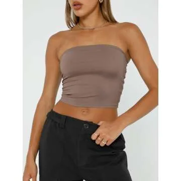Trendy Queen Womens Tube Tops Strapless Crop Tops Basic Backless Sleeveless Bandeau Going Out Cute 2025 Summer Outfits Coffee Grey XS