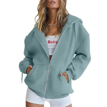 Show moreIntroducing the ultimate combination of style and comfort for the colder months: the Trendy Queen Women’s Zip Up Hoodie. Crafted from a luxurious blend of 50% Polyester and 50% Cotton, this oversized sweatshirt is luxuriously thick and incredibly cozy, making it perfect for casual outings, lounging at home, or running errands. Designed with a stunning zip-up feature and an adjustable drawstring collar, your neckline stays snug while you effortlessly showcase your chic style.