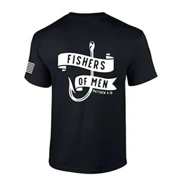 Trenz Shirt Company Men's Christian Shirt Fishers of Men Matthew 4:19 Scripture American Flag Sleeve Graphic Tee - Black - Medium