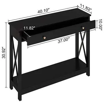 Treocho Black Console Table with Drawer and Storage Shelves, Foyer Sofa Table Narrow for Entryway, Living Room, Hallway