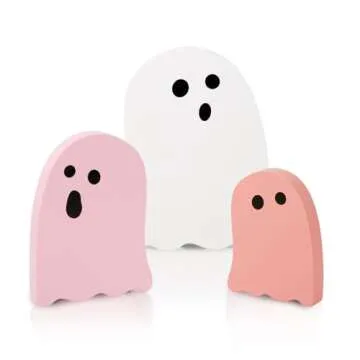 Show moreTransform your Halloween decor with the whimsical charm of the Treory Halloween Table Decorations. This delightful set includes three adorable pink and white ghost wooden signs, expertly crafted to enhance your festive home ambiance. Each ghost features a unique color gradient, transitioning from a soft pink to a pure white, embodying the playful spirit of Halloween. With their premium wood construction, these decorations not only look cute but are designed to last, making them a perfect addition to your indoor Halloween setup.