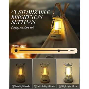Designed for convenience, the rechargeable camping lantern operates on 2 rechargeable Lithium batteries (included) or can use standard AA batteries if needed. After a full charge, it can provide illumination for an impressive 9 to 75 hours, making it an essential tool for power outages, outdoor emergencies, or camping adventures. A USB Type-C charging cord is included for effortless recharging.