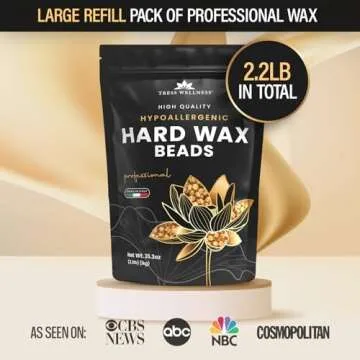 Show moreDiscover the Tress Wellness Wax Beads, a professional quality hard wax solution designed specifically for effective at-home hair removal. Each 2.2 lb package offers a formula that strikes the perfect balance between efficacy and comfort, making your waxing experience smoother than ever. Crafted with care in Italy, these hypoallergenic and unscented wax beads deliver salon-level results right in your bathroom. The golden visibility of the wax not only looks appealing, but its hyper-elastic properties ensure that it wraps securely around even the coarsest of hairs without causing unnecessary tugging or pulling on your skin.