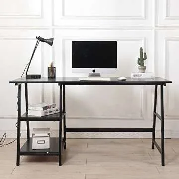 Trestle Desk with 2 Shelves, soges Home Office Storage Desk with Hutch, 55 inches Computer Desk Workstation, Student Desk Wooden School Desk, Black