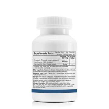 Trexgenics® Fenugreek Premium Standardized (50% Saponin) 600 mg Vegan & Gluten Free with Bio-Enhancer Piperine 5mg Multi-Action Herbal Complex (60 Veg Capsules)