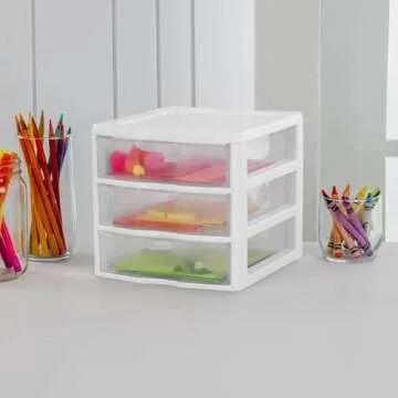 Tribello 3 Drawer Plastic Storage, Mini Drawer Unit, White Frame With Clear Drawers for Craft Storage - 8.5"L X 7"W X10"H Inches - (1 Pack)