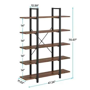 Tribesigns 5-Tier Bookshelf, Vintage Industrial Style Bookcase 72 H x 12 W x 47L Inches