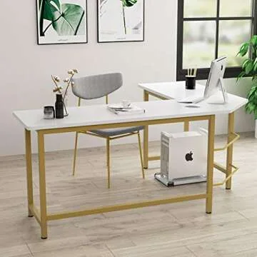 Tribesigns 66 inch Modern L Shaped Desk, Corner Computer Office Desk PC Laptop Gaming Table Workstation for Home Office, White Gold Metal Frame