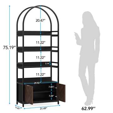 Tribesigns Bookshelf with Door, 75.9 Inch Tall Etagere Bookcase for Storage