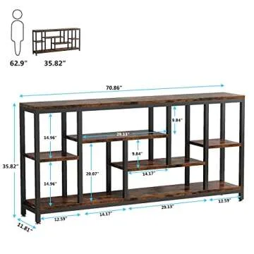 With its impressive dimensions of 70.86” L x 11.8” W, the extra-long narrow tabletop offers ample space for illuminating lamps, cherished family photos, or aromatic candles. Enjoy the organization it brings as you say goodbye to clutter with its multi-staged shelving system that caters to all your storage needs.