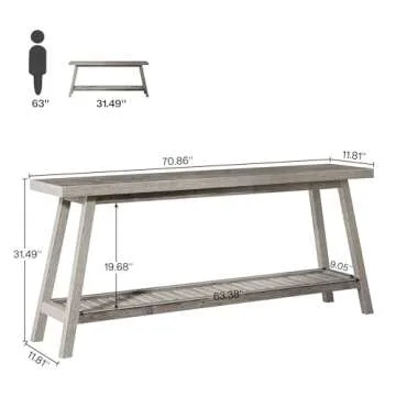 Show moreIntroducing the Tribesigns Farmhouse Console Entryway Table, an exquisite blend of functionality and rustic charm. Measuring an impressive 70.9 inches in length, this two-tier console table is designed specifically for your home’s entryway, hallway, and living room. With its sleek and narrow body, it maximizes your space without overwhelming it, making it a perfect choice for any size home. Not only does it provide ample storage for daily items and decor essentials, but its stunning vintage grey wood and trapezoid heavy-duty base add a touch of elegance, enhancing your home's welcoming atmosphere.